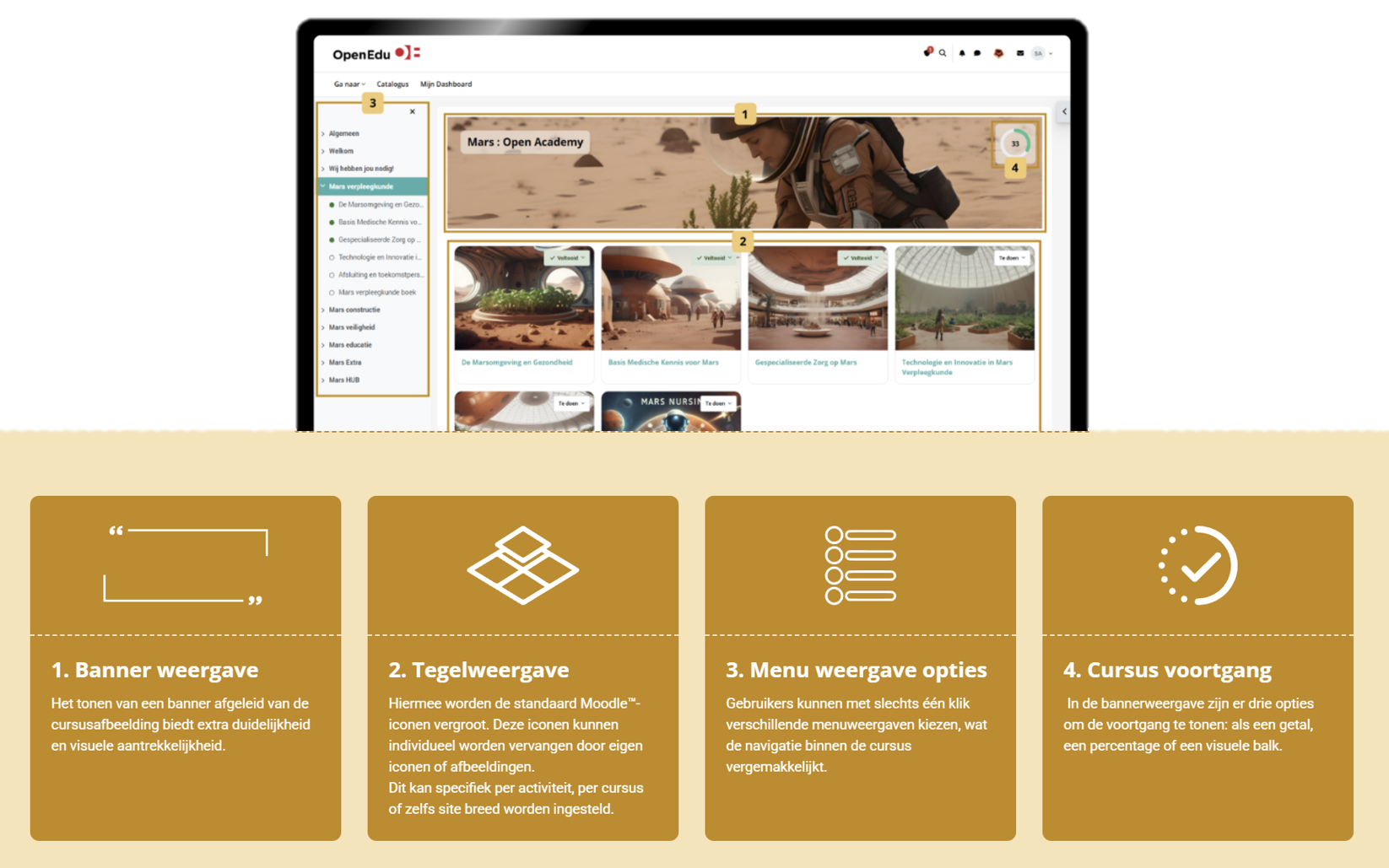 Deze afbeeldingen zijn individueel in te stellen, maar ook massaal te beheren op cursus- of siteniveau.