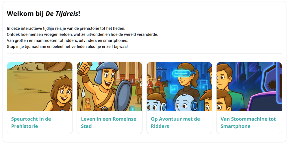 Cursus Tijdreis, activiteiten weergegeven met eigen afbeeldingen: