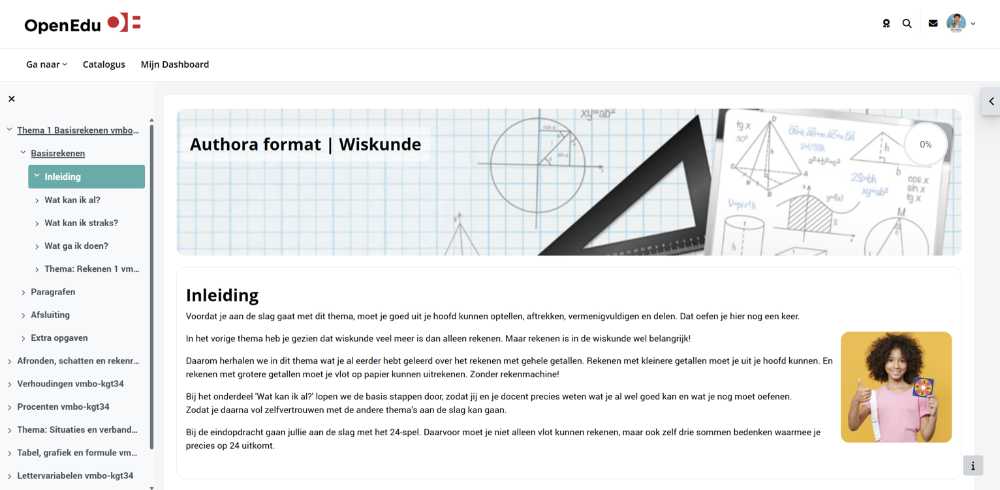 In tegenstelling tot andere formats (zoals Tiles), behouden wij de vertrouwde Moodle-sectiestructuur, inclusief consistente navigatie.