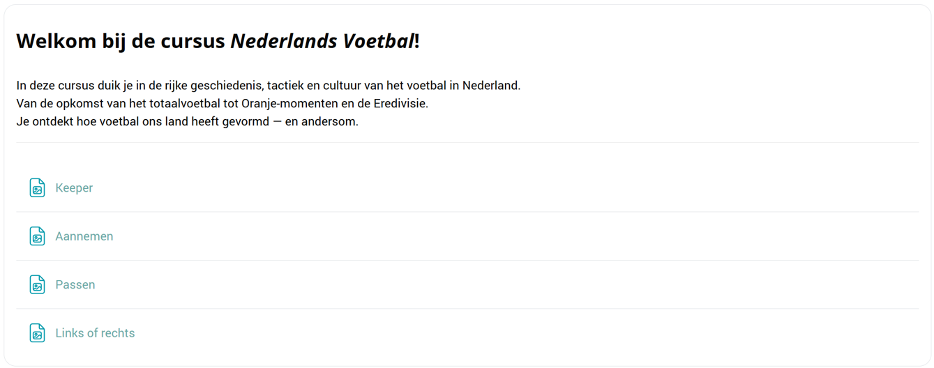 Cursus Nederlands voetbal, tegelweergave mogelijk met Authora :