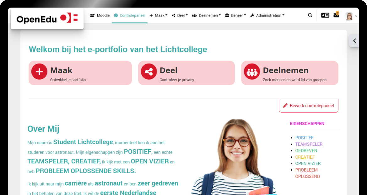 Een sleutelaspect van Mahara™ is de nadruk op gebruikers controle, personalisatie en flexibiliteit. Hier kun je jouw portfolio's aanpassen en beheren, beslissen welke informatie je deelt en met wie. Dit bevordert een persoonlijke leeromgeving die ruimte biedt voor zowel formeel als informeel leren, waarbij je de regie hebt over je leertraject.