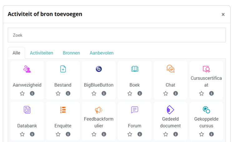 Deze ingebouwde activiteiten binnen Moodle™ illustreren de rijkdom en flexibiliteit van het platform, en bieden educators de tools om een omgeving te creëren die zowel leerzaam als engaging is.