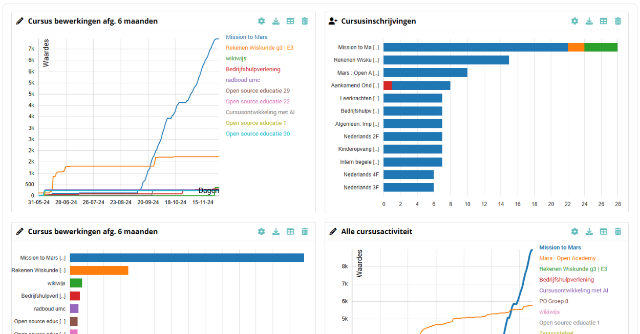 Ontketen de Kracht van 'Inzicht' met OpenEdu's Moodle™ Premium. Met OpenEdu's revolutionaire 'Inzicht'-tool binnen Moodle™ Premium, opent u een wereld van geavanceerde, cursusoverstijgende analyses en rapportages. Dit innovatieve dashboard biedt docenten en beheerders een ongeëvenaarde blik op de dynamiek en prestaties van uw leeromgeving.